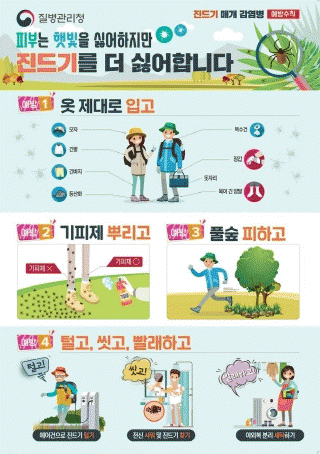 ÂêÂê°¡¹«½ÃÁõ, SFTS(ÁßÁõ¿¼ºÇ÷¼ÒÆÇ°¨¼ÒÁõÈıº) µî Áøµå±â¸Å°³°¨¿°º´À» ¿¹¹æÇϱâ À§Çؼ´Â Áøµå±â¿¡ ¹°¸®Áö ¾Ê´Â °ÍÀÌ Áß¿äÇÏ´Ù. µû¶ó¼ ¾ß¿ÜȰµ¿ ½Ã¿¡´Â ±ä ÆÈ¡¤±ä ¹ÙÁö Âø¿ë µîÀ¸·Î ÇǺΠ³ëÃâÀ» ÃÖ¼ÒÈÇϰí, ±Í°¡ ÈÄ¿¡´Â ¹Ù·Î ¿ÊÀ» ¼¼Å¹Çϰí Áøµå±â¿¡ ¹°·È´ÂÁö È®ÀÎÇØ¾ß ÇÑ´Ù.