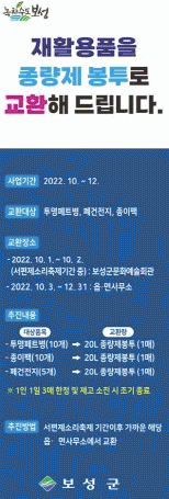 Åõ¸íÆäÆ®º´ 10°³, Á¾ÀÌÆÑ 10°³, Æó°ÇÀüÁö 5°³¸¦ °¡Á®¿À¸é °¢°¢ Á¾·®Á¦ ºÀÅõ(20L) 1¸Å¸¦ ¹ÞÀ» ¼ö ÀÖ´Ù. 1Àδç ÇÏ·ç ÃÖ´ë 3¸Å¸¦ ¹ÞÀ» ¼ö ÀÖÀ¸¸ç, ÁغñµÈ Á¾·®Á¦ ºÀÅõ(7,400Àå)°¡ ¼ÒÁøµÇ¸é Á¶±â Á¾·áµÉ ¼ö ÀÖ´Ù.