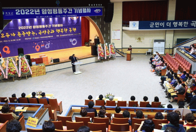 À̳¯ Çà»ç´Â °î¼º±ºÀÌ ÁÖÃÖÇÏ°í °î¼º±º¿©¼º´ÜüÇùÀÇȸ°¡ ÁÖ°üÇßÀ¸¸ç, °î¼º±º ¿©¼º ´Üü ȸ¿ø°ú ±º¹Î µî 200¿© ¸íÀÌ Âü¼®Çß´Ù. ¡®¸ðµÎ°¡ Á¸Áß¹Þ´Â, °î¼º±º°ú ÇູÇÑ µ¿Ç࡯À̶ó´Â ÁÖÁ¦¿¡ µû¶ó Âü¼®ÀÚµéÀº »çȸ °¢ ºÐ¾ß¿¡¼ ³²¼º°ú ¿©¼º °£ Â÷º° ¾ø´Â ¾ç¼ºÆòµî »çȸ¸¦ ½ÇÇöÇÏÀÚ°í ¸ñ¼Ò¸®¸¦ ³ô¿´´Ù.