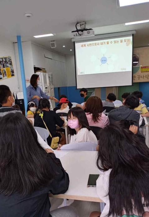 ±¤ÁÖ±¹Á¦°³¹ßÇù·Â¼¾ÅÍ´Â À̹ø ±³À°À» ÅëÇØ ÃÊ.ÁßÇлýµéÀÌ ¼¼°è½Ã¹ÎÀ¸·Î¼ µ¿Çà°ú ¿¬´ëÀÇ °¡Ä¡¸¦ ÇÔ¾çÇϰí, À̸¦ Åä´ë·Î ±¹Á¦±â±¸ ÁøÃâÀ» ²Þ²Ü ¼ö ÀÖµµ·Ï µ¿±âºÎ¿©¿¡ Èû½è´Ù.