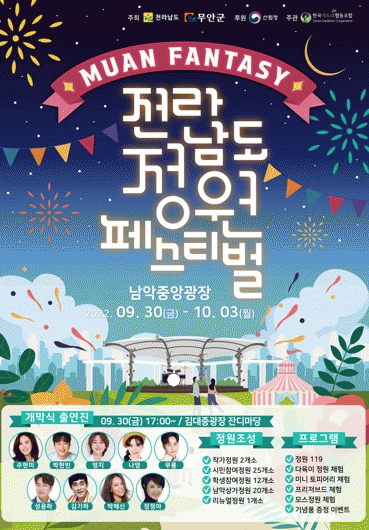 23ÀÏ ¹«¾È±º¿¡ µû¸£¸é Á¤¿ø Æä½ºÆ¼¹úÀº Àü¶ó³²µµ¿Í ¹«¾È±ºÀÌ ÁÖÃÖÇÏ°í »ê¸²Ã»ÀÌ ÈÄ¿øÇϸç Äڷγª19·Î ÁöÄ£ ÁֹεéÀÇ ¸ö°ú ¸¶À½À» Ä¡À¯ÇÏ°í µµ½É¿¡¼ µ¿È ¼Ó Á¤¿øÀ» Áñ±æ ¼ö ÀÖµµ·Ï ¡®¹«¾È ȯŸÁö¡¯¶ó´Â ÁÖÁ¦·Î ¿¸°´Ù.