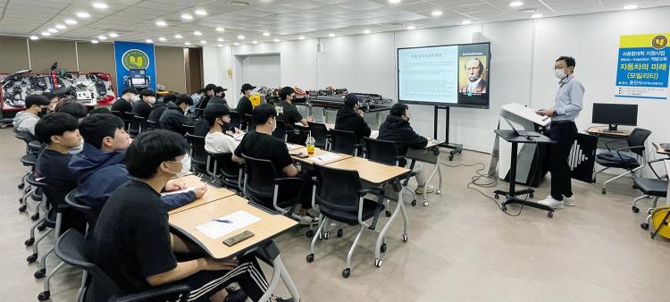 ¹Ì·¡ÀÚµ¿Â÷°øÇкΠ1Çгâ ÀçÇлýµéÀ» ´ë»óÀ¸·Î ½Ç½ÃµÈ ÀÌ ³¯ Ư°Àº ¡®ÀÚµ¿Â÷ÀÇ ¹Ì·¡¡¯¸¦ ÁÖÁ¦·Î ÀÚµ¿Â÷ÀÇ ¿ª»ç¸¦ µ¹¾Æº¸¸ç ÀÚµ¿Â÷ÀÇ ¹Ì·¡ ¸ð½À¿¡ ´ëÇØ ÀÌÇØÇÏ´Â ½Ã°£À¸·Î ÁøÇàµÆ´Ù.