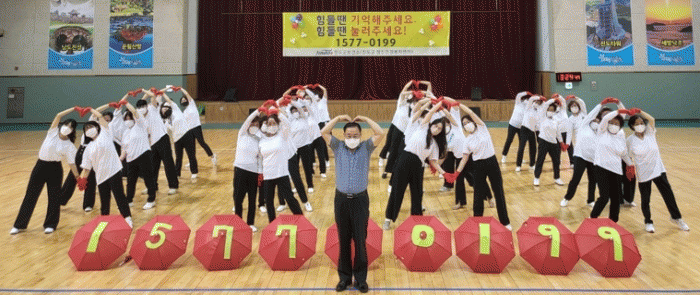 ±ºÀº Á÷¿ø, ¸¶À»ÁÖ¹Î, Çлý, Á¤½Å°Ç°º¹Áö¼¾ÅÍ È¸¿ø µî 50¿© ¸íÀÌ Âü¿©ÇÏ°í ¡°³ª ÀÚ½ÅÀº ¼ÒÁßÇϰí, ÈûÀÌ µé°í ±«·Î¿ï ¶© ¾ðÁ¦³ª Áøµµ±º Á¤½Å°Ç°º¹Áö¼¾ÅͰ¡ ÇÔ²² ÇÑ´Ù¡±´Â ¸Þ½ÃÁö¸¦ ´ã¾Æ ÃâǰÇß´Ù.