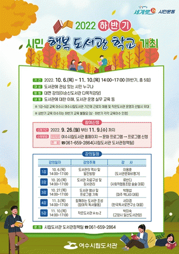 °ÀǺ° ÀÚ¼¼ÇÑ ÀÏÁ¤ ¹× ³»¿ëÀº ¿©¼ö½Ã¸³µµ¼°ü ȨÆäÀÌÁö¿¡¼ È®ÀÎÇÒ ¼ö ÀÖ´Ù.