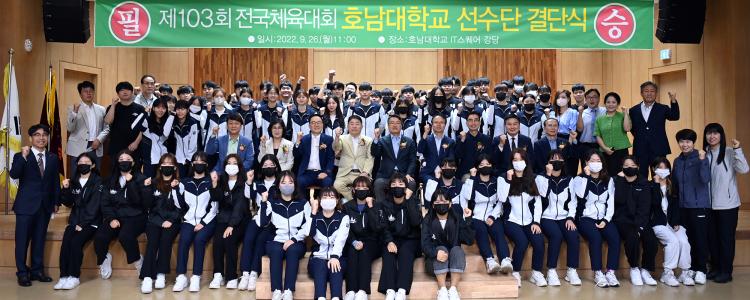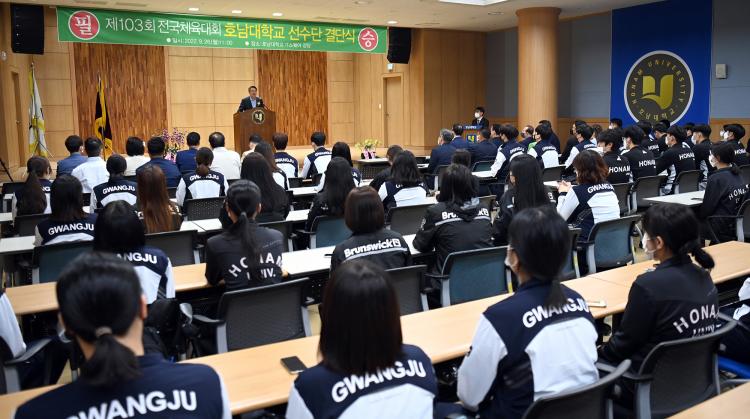 À̹ø Àü±¹Ã¼Àü¿¡ ¹è±¸¡¤Ææ½Ì¡¤Å¹±¸¡¤º¼¸µ¡¤¾¾¸§ µî 9°³ Á¾¸ñ 65¸í(¼±¼ö 53¸í, ÀÓ¿ø 12¸í)ÀÌ ÃâÀüÇϴ ȣ³²´ë ¼±¼ö´Ü °á´Ü½Ä¿¡´Â ¹Ú»óö È£³²´ëÇб³ ÃÑÀå°ú °¢ ´Ü°ú´ëÇÐ ÇС¤Ã³Àå, ±³¼öÁø, ÀÌ»óµ¿ ±¤ÁÖ±¤¿ª½ÃüÀ°È¸Àå°ú Á¾¸ñº°ÇùȸÀå, üÀ°Çаú µ¿¹®È¸ µî ³»¿Üºó°ú ¼±¼ö´Ü µî 100¿© ¸íÀÌ Âü¼®Çß´Ù.