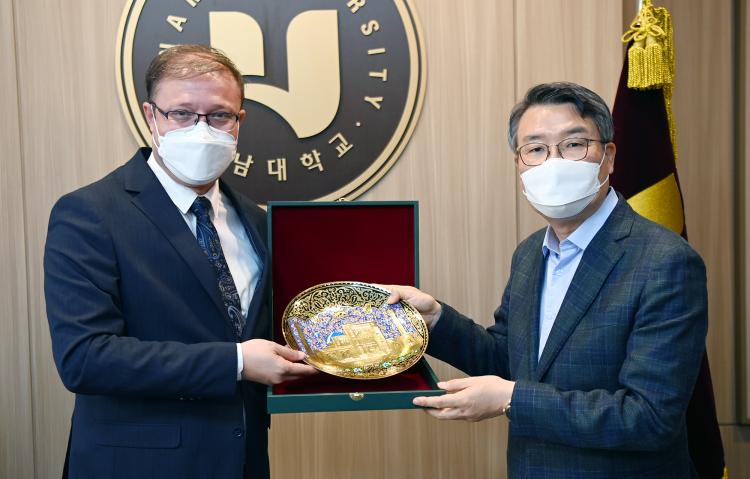 [ÅåÅå´º½º]ÁÖÇÑ¿ìÁ´ë»ç°ü ÇÏÀÌ´Ù¸£ ÆÄÀÌÁö¿¹ºê(Khaydar Fayziyev) ¿µ»ç°¡ 9¿ù 26ÀÏ È£³²´ëÇб³¸¦ ¹æ¹®ÇØ ¹Ú»óö ÃÑÀåÀ» ¿¹¹æÇϰí ȯ´ãÇß´Ù.