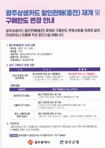 Àç°³ ù³¯ÀÎ 10¿ù1ÀÏÀº Åä¿äÀÏÀ̹ǷΠ¿î¿µ´ëÇà»çÀÎ ±¤ÁÖÀºÇàÀÇ ÀÎÅͳݹðÅ·, ½º¸¶Æ®¹ðÅ· µî ¿Â¶óÀÎ ¸Åü¸¦ ÅëÇÑ Ä«µå ÃæÀü¸¸ °¡´ÉÇϸç, ÀºÇà ¿µ¾÷ÀÏÀÎ 10¿ù4ÀϺÎÅÍ´Â ¿Â¶óÀÎ ÃæÀü »Ó ¾Æ´Ï¶ó ±¤ÁÖÀºÇà Àü ¿µ¾÷Á¡¿¡¼ ±¸¸Å¿Í ÃæÀüÀÌ °¡´ÉÇÏ´Ù.
