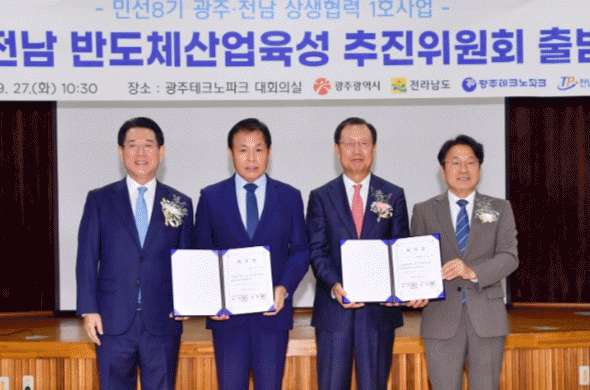 ±¤ÁÖ±¤¿ª½Ã¿Í Àü¶ó³²µµ´Â 27ÀÏ ±¤ÁÖÅ×Å©³ëÆÄÅ©¿¡¼ °±âÁ¤ ½ÃÀå°ú ±è¿µ·Ï µµÁö»ç, Á¤¹«Ã¢ ½ÃÀÇȸ ÀÇÀå°ú ¼µ¿¿í µµÀÇȸ ÀÇÀå, Á¤¼ºÅà Àü³²´ë ÃÑÀå, ±èÁ¾°© îñ ÇÏÀ̴нº »çÀå µî 30¿© ¸íÀÌ Âü¼®ÇÑ °¡¿îµ¥ ¡®±¤ÁÖ¡¤Àü³² ¹ÝµµÃ¼»ê¾÷ À°¼º °øµ¿ÃßÁøÀ§¿øÈ¸¡¯ Ãâ¹ü½ÄÀ» °¡Á³´Ù.