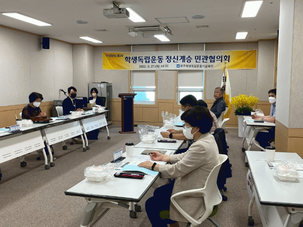 28ÀÏ ±¤ÁÖÇлýµ¶¸³¿îµ¿±â³äȸ°ü¿¡ µû¸£¸é ¡®Çлýµ¶¸³¿îµ¿ Á¤½Å°è½Â ¹Î°üÇùÀÇȸ¡¯´Â Çлýµ¶¸³¿îµ¿ ±â³ä ¹× Á¤½Å°è½Â »ç¾÷ÀÇ È¿À²ÀûÀÎ ÃßÁøÀ» À§ÇØ °³ÃֵȴÙ. Áö³ 2018³âºÎÅÍ ±¤Áֽà ¹× °ü·Ã ´ÜüµéÀÇ ±ä¹ÐÇÑ ¼ÒÅë°ú Çù·ÂÀÇ ÀåÀ¸·Î ÀÚ¸®Çϰí ÀÖÀ¸¸ç, ¿¬ 2ȸ Á¤·Êȸ·Î ¿¸°´Ù.