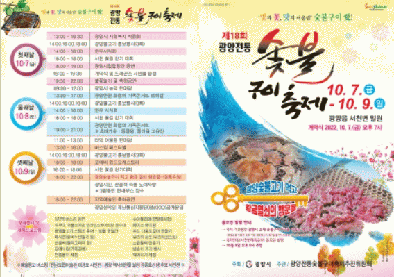 ±¤¾çÀüÅ뽡ºÒ±¸ÀÌÃàÁ¦ÃßÁøÀ§¿øÈ¸´Â °¡À» ´ëÇ¥ ¸Ô°Å¸® ÃàÁ¦ÀÎ ±¤¾çÀüÅ뽡ºÒ±¸ÀÌÃàÁ¦¸¦ 10¿ù 7ÀϺÎÅÍ 3Àϰ£ ±¤¾çÀ¾ ¼Ãµº¯ ÀÏ¿ø°ú Àü³²µµ¸³¹Ì¼ú°ü, ¿¹¼úâ°í µî ±¤¾çÀ¾ Àü¿ª¿¡¼ ¹®ÈÇà»ç·Î °³ÃÖÇÑ´Ù.
