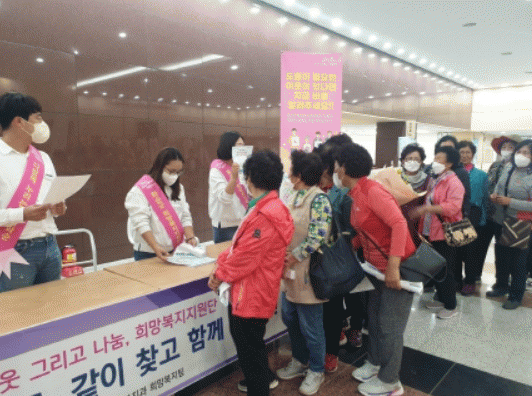 À̳¯ Ä·ÆäÀο¡¼ ÁÖº¯ÀÇ ¾î·Á¿î ÀÌ¿ôÀ̳ª À§±â°¡Á¤¿¡ °ü½ÉÀ» µÎ°í ÇàÁ¤º¹Áö¼¾ÅÍ¿Í ¿¬°èÇÒ ¼ö ÀÖ´Â Áö¿ª»çȸ±¸Á¶¸¦ ¸¸µé±â À§ÇØ Âü¿© Áֹε鿡°Ô º¹Áö »ç°¢Áö´ë ¹ß±¼°ú °ü·ÃÇÑ È«º¸ Àü´ÜÁö¿Í È«º¸ ¹°Ç°À» ¹èºÎÇß´Ù.