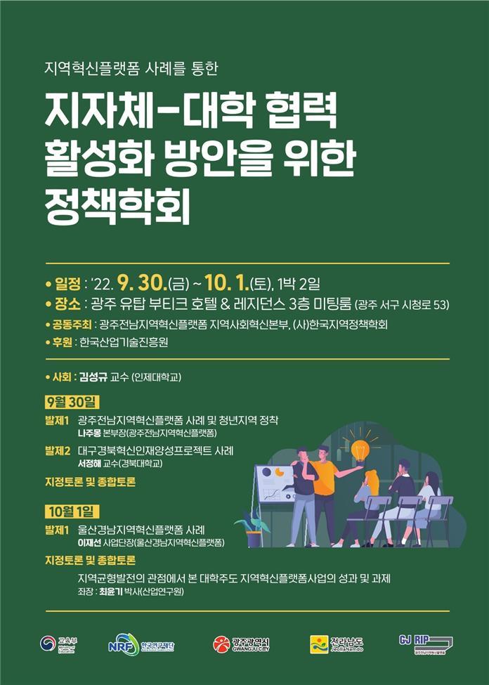 Á¤Ã¥ÇÐȸ ù ³¯¿¡´Â ±¤ÁÖÀü³²Áö¿ªÇõ½ÅÇ÷§Æû »ç·Ê¿Í û³âÁö¿ªÁ¤Âø, ´ë±¸°æºÏÇõ½ÅÀÎÀç¾ç¼º ÇÁ·ÎÁ§Æ®(ÈÞ½ºÅ¸)»ç·Ê¿¡ ´ëÇÑ ÁÖÁ¦¹ßÇ¥¿Í Åä·ÐÀÌ À̾îÁö°í, µÑ° ³¯Àº ¿ï»ê°æ³²Áö¿ªÇõ½ÅÇ÷§Æû»ç·Ê¿Í Áö¿ª±ÕÇü¹ßÀüÀÇ °üÁ¡¿¡¼ º» ´ëÇÐÁÖµµ Áö¿ªÇõ½ÅÇ÷§Æû»ç¾÷ÀÇ ¼º°ú¿Í °úÁ¦¸¦ ÁÖÁ¦·Î Á¾ÇÕÅä·ÐÀÌ ÁøÇàµÈ´Ù.