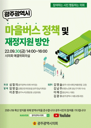 ¹ßÁ¦ÀÚÀÎ ÀÓ¿µ±æ ±³Åë¾ÈÀü±¹¹ÎÆ÷·³ ±¤ÁÖÀü³²ÁöȸÀåÀº ±¤Áֽà ¸¶À»¹ö½º Áö¼Ó°¡´É¼º ¹æ¾È, ÀÌÁØ¿µ ±¤ÁÖ³ì»ö±³Åë¿îµ¿ »óÀÓ´ëÇ¥´Â Àü±¹ ¸¶À»¹ö½º °ø°ø¼º °È Á¤Ã¥ ¹× ±¤Áֽà ¸¶À»¹ö½º Çö½ÇÀ» ÁÖÁ¦·Î °¢°¢ ¹ßÁ¦ÇÑ´Ù.