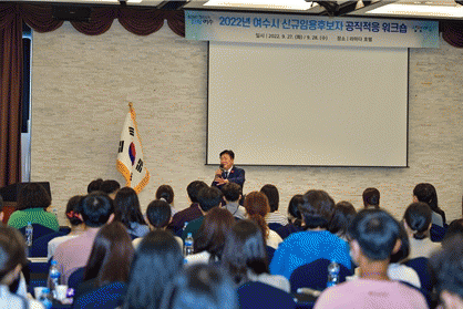 Á¤±â¸í ½ÃÀåÀº Àλ縻À» ÅëÇØ ¡°Ä¡¿ÇÑ °æÀïÀ» ¶Õ°í ¿©¼ö½ÃÀÇ °øÁ÷ÀÚ°¡ µÇ½Å ¿©·¯ºÐ²² Áø½É¾î¸° ÃàÇÏ¿Í È¯¿µÀÇ ¸»¾¸À» µå¸°´Ù¡±¸ç ¡°»õ³»±â °øÁ÷ÀÚ ¿©·¯ºÐÀÇ ¾î±ú¿¡ ¹Ù·Î ¿ì¸® ¿©¼öÀÇ ¹Ì·¡°¡ ´Þ·ÁÀÖ´Ù¡±°í °Á¶Çß´Ù.
