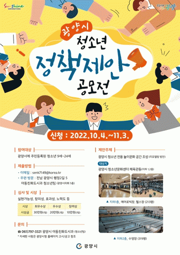 Âü¿©´ë»óÀº ±¤¾ç½Ã¿¡ °ÅÁÖÇÏ´Â 9~24¼¼ û¼Ò³âÀ̸ç, Á¢¼ö±â°£Àº ¿À´Â 11¿ù 3ÀϱîÁö·Î °ø¸ðÀü ÁÖÁ¦´Â ¡®±¤¾ç½Ã û¼Ò³â Àü¿ë ³îÀ̹®È°ø°£ Á¶¼º ¸®¸ðµ¨¸µ ¹æ¾È¡¯ÀÌ´Ù.