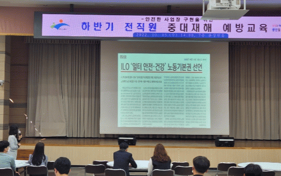 Áß´ëÀçÇØÃ³¹ú¹ýÀÇ ÀÌÇØ ¹× ¾ÈÀüº¸°Ç°ü¸®Ã¼°è ±¸ÃàÀ» ÁÖÁ¦·Î Áß´ëÀçÇØÃ³¹ú¹ýÀÇ ÁÖ¿ä ³»¿ëºÎÅÍ µµ±Þ¡¤¿ë¿ª¡¤À§Å¹ ºÎ¹® Á¾»çÀÚÀÇ ¾ÈÀüÀ» À§ÇØ ÁöÀÚü°¡ ÁؼöÇØ¾ß ÇÒ Àû¿ë»çÇ× µî¿¡ ´ëÇÑ ±³À°µµ ÁøÇàµÆ´Ù.