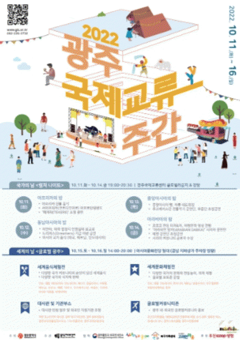 ±¹Á¦±³·ùÁÖ°£Àº 11~14ÀÏ¿¡´Â ¸ÅÀÏ ¿ÀÈÄ 7½ÃºÎÅÍ 9½Ã±îÁö ±¤ÁÖ±¹Á¦±³·ù¼¾ÅÍ¿¡¼ ¡®±¹°¡ÀÇ ³¯- ÄÃó ³ªÀÌÆ®¡¯ ÇÁ·Î±×·¥ÀÌ ÁøÇàµÇ¸ç, 15~16ÀÏ¿¡´Â ¾Æ½Ã¾Æ¹®ÈÀü´ç ÀÏ´ë¿¡¼ ÃæÀåÃàÁ¦¿Í ¿¬°èµÈ ¡®¼¼°èÀÇ ³¯-±Û·Î¹ú ±¤ÁÖ¡¯°¡ ÆîÃÄÁø´Ù.