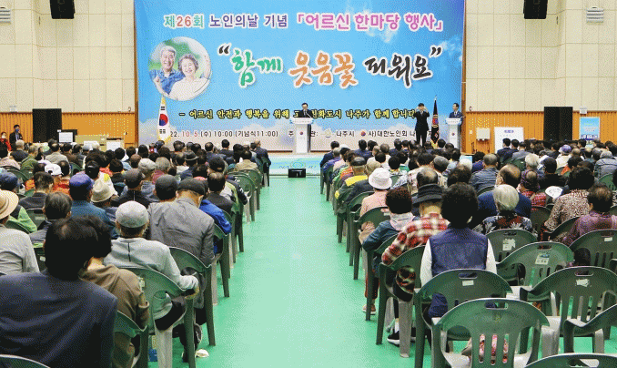 À±º´Å ³ªÁÖ½ÃÀåµµ Ãà»ç¸¦ ÅëÇØ ¡°¿À´Ã³¯ ¿ì¸® ¸ðµÎ°¡ ´©¸®°í Àִ dz¿ä¿Í ÇູÀº ±×µ¿¾È ¾î¸£½ÅµéÀÌ È기 ÇÇ¿Í ¶¡ÀÇ °á°ú¶ó°í »ý°¢ÇÑ´Ù¡±¶ó¸ç ¡°¾î¸£½ÅµéÀÌ °Ç°Çϰí ǰÀ§ ÀÖ´Â ³ëÈÄ»ýȰ ¿©°Ç ¸¶·Ã°ú °æ·û°ú ÁöÇý¸¦ »çȸ¿¡ ȯ¿øÇÒ ¼ö ÀÖ´Â ±â¹Ý Á¶¼º¿¡ ½ÉÇ÷À» ±â¿ïÀ̰ڴ١±¶ó°í ¸»Çß´Ù.