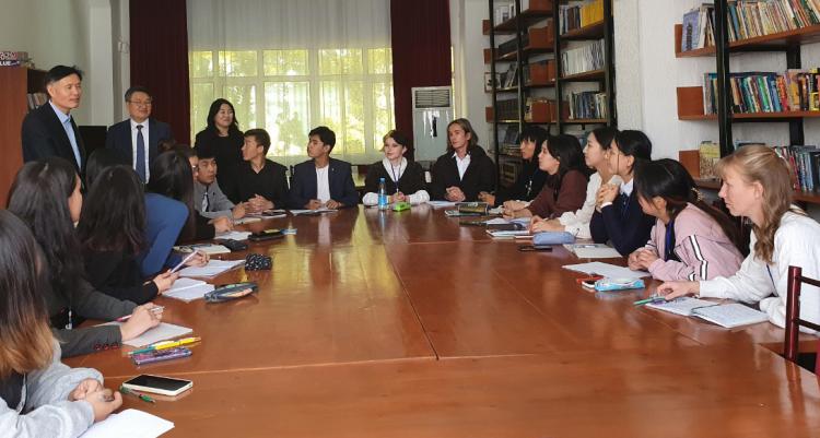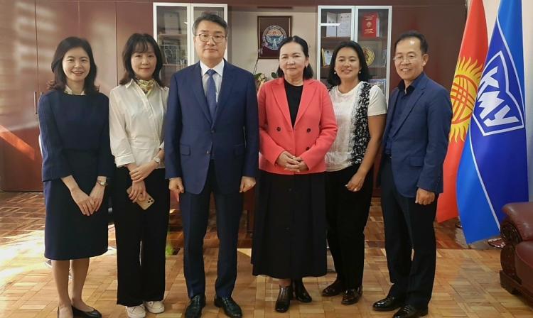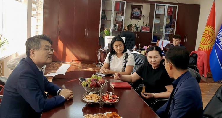 ÀÌ¾î ¹Ú»óö ÃÑÀå ÀÏÇàÀº ¾Æ¶ó¹Ù¿¹¹Ù±¹¸³´ëÇÐÀ» ¹æ¹®, ¾Æºêµå¶ó¿¹¹Ù ¾ÆÀ̱¼ 퇼·¹Äں곪(Abdyraeva Aigul Telekovna) ÃÑÀå°ú º£À̽¦³ë¹Ù ¾ÆÀ̼ú·ç Æ¿·ºÄں곪(Beisenova Aisuluu Tilekovna) ±¹Á¦°ü°èÇõ½Å ºÎÃÑÀå, ¼Õµ¿¿ø ±³¼ö(µ¿¾çÇкΠÇѱ¹¾î°ú) µîÀ» ¸¸³ª Çѱ¹¾î±³À° µî »óÈ£ ±³·ù Çù·Â ¹æ¾È¿¡ ´ëÇØ ±¸Ã¼ÀûÀÎ ³íÀǸ¦ °¡Á³´Ù.