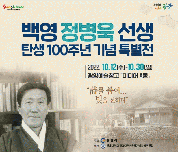 ±¤¾ç½Ã°¡ ÁÖÃÖÇÏ´Â À̹ø Àü½Ã´Â Çѱ¹ °íÀü½Ã°¡ÀÇ Áø¼ö¿Í ÀüÅëÀ» ¹àÈ÷°í À±µ¿ÁÖ ½ÃÁý À¯°í¸¦ º¸Á¸ÇØ ¼¼»ó¿¡ ¾Ë¸®´Â µî ã̸¦ ǰ¾î ºûÀ» ÀüÇÑ, ¹é¿µ Á¤º´¿í ¼±»ýÀÇ »ý¾Ö¿Í Çй® ¼¼°è¸¦ ³Î¸® ¾Ë¸®±â À§ÇØ ¸¶·ÃµÆÀ¸¸ç, ¿¬¼¼´ëÇб³ ¹®°ú´ëÇаú ¹é¿µ±â³ä»ç¾÷ÃßÁøÈ¸°¡ ÈÄ¿øÇÑ´Ù.