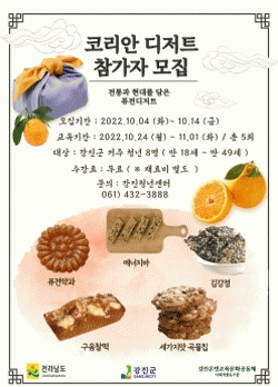 ¿ì¸®Áö¿ª ½Ò°ú Ư»êǰÀ¸·Î ¸¸µå´Â Ç»Àü°£½Ä ÄÚ¸®¾ÈµðÀúÆ® ±³À° °úÁ¤Àº ¿À´Â 24ÀϺÎÅÍ 11¿ù 1ÀϱîÁö ÃÑ 5ȸ¿¡ °ÉÃÄ Ç»Àü¾à°ú, ¿¡³ÊÁö¹Ù, ±è °Á¤, ±¸¿òÂû¶±, °î¹°Ä¨ µîÀ» ±³À°ÇÒ ¿¹Á¤ÀÌ´Ù.