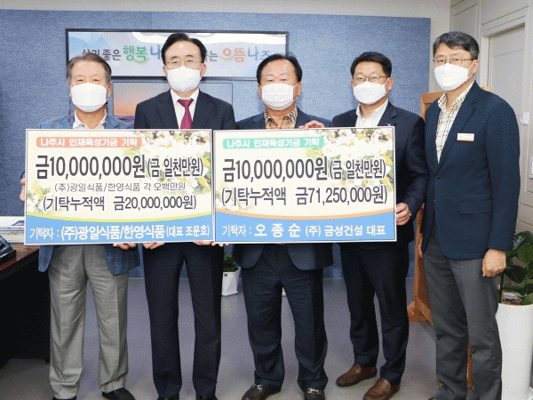 À±º´Å ³ªÁÖ½ÃÀåÀº ¡°´©±¸º¸´Ù ¾ÕÀå¼ Áö¿ª ¹ßÀü¿¡ ±â¿©ÇØÁֽô µÎ ºÐ ´ëÇ¥²²¼ ³ªÁÖ¸¦ ºû³¾ ÀÎÀçµéÀ» À§ÇÑ ±â±ÝÀ» ±âÅ¹ÇØÁּż °¨»çµå¸°´Ù¡±¶ó¸ç ¡°Çо÷ ¿©°ÇÀÌ ³ì·ÏÄ¡ ¾ÊÀº ÇлýµéÀ» À§ÇÑ ÀåÇбÝÀ¸·Î °í·ç ¾²ÀÏ ¼ö ÀÖµµ·Ï ´ë»óÀÚ ¼±Á¤¿¡ ½ÅÁßÀ» ±âÇÏ°í ¾çÁúÀÇ ±³À° ¿©°Ç °³¼±À» À§ÇØ ¼ÒÁßÈ÷ »ç¿ëÇϰڴ١±¶ó°í ¸»Çß´Ù.