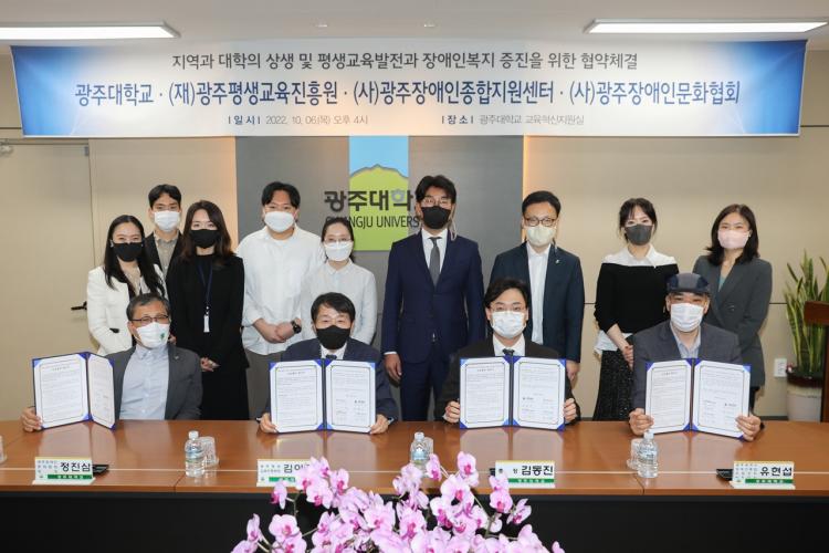 ±¤ÁÖ´ë ÇàÁ¤°ü ±³À°Çõ½ÅÁö¿ø½Ç¿¡¼ Áö³ 6ÀÏ ¿¸° Çù¾àü°á½Ä¿¡´Â ±èµ¿Áø ±¤ÁÖ´ë ÃÑÀå, ±èÀ̰⠱¤ÁÖÆò»ý±³À°ÁøÈï¿øÀå, À¯Çö¼· (»ç)±¤ÁÖ±¤¿ª½ÃÀå¾ÖÀÎÁ¾ÇÕÁö¿ø¼¾ÅÍ »óÀÓÀÌ»ç, Á¤Áø»ï (»ç)±¤ÁÖÀå¾ÖÀι®ÈÇùȸÀåÀ» ºñ·ÔÇØ °¢ ±â°ü °ü°èÀÚµéÀÌ Âü¼®ÇØ ¿·È´Ù.