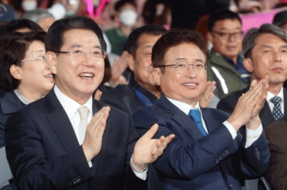 À̳¯ Çà»ç¿¡ Âü¼®ÇÑ ¿µÈ£³² Áö¿ª¹Îµéµµ Àü³²-°æºÏÀÌ À̲ø¾î°¥ Áö¹æ½Ã´ë¿¡ ´ëÇÑ ±â´ë°¨¿¡ ¶ß°Å¿î ¹Ú¼ö°¥Ã¤¸¦ ¿¬ÀÌ¾î ½ñ¾Æ³Â´Ù.