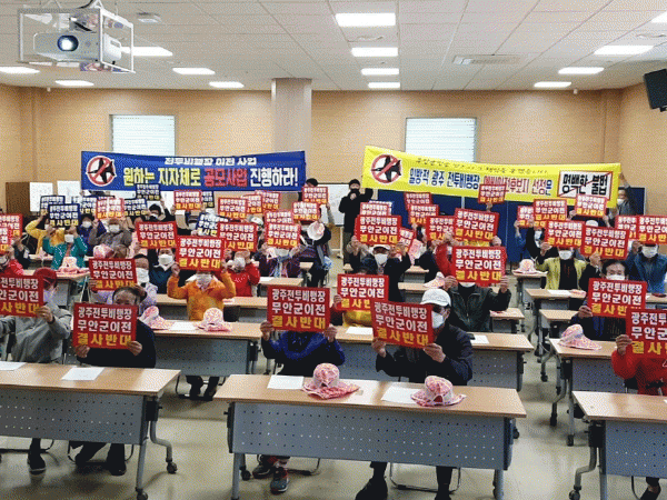 °áÀÇ´ëȸ¿¡ Âü¿©ÇÑ ÁֹΠ60¿©¸íÀº ±¤ÁÖ±¤¿ª½ÃÀÇ ÀϹæÀûÀÎ ÀüÅõºñÇàÀå ÀÌÀü»ç¾÷ ½ÇŸ¦ ±ÔźÇÏ´Â µî ¹Ý´ëÀǻ縦 °·ÂÇÏ°Ô Ç¥¸íÇß´Ù.