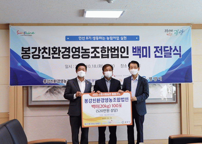 Á¤ÀÎÈ ±¤¾ç½ÃÀåÀº ¡°°æÁ¦ÀûÀ¸·Î Èûµç ½Ã±â¿¡ ³ª´®À» ½ÇÃµÇØ ÁֽŠ¹Ú±¤±â ºÀ°Ä£È¯°æ¿µ³óÁ¶ÇÕ¹ýÀÎ ´ëÇ¥¿¡°Ô °¨»çµå¸°´Ù¡±¸ç, ¡°º¸³»ÁֽЏ¶À½Àº µµ¿òÀÌ ÇÊ¿äÇÑ ºÐµé¿¡°Ô ¹èºÎÇØ º¹Áö »ç°¢Áö´ë ÇØ¼Ò¿¡ ´õ¿í ³ë·ÂÇϰڴ١±°í ¸»Çß´Ù.