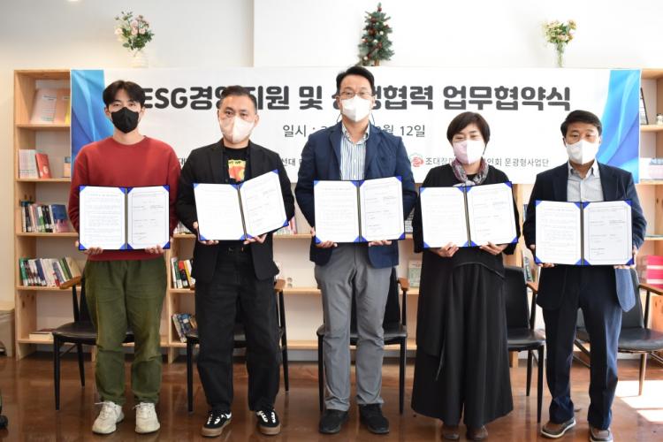 À̹ø ¾÷¹«Çù¾àÀº »çȸÀû °¡Ä¡ ½ÇÇö ¹× Áö¼Ó °¡´ÉÇÑ ESG°æ¿µ Ȱ¼ºÈ¸¦ À§ÇØ ¸¶·ÃµÆÀ¸¸ç Á¶´ëÀå¹ÌÀǰŸ® »óÀÎȸ, Á¶´ëÀå¹ÌÀǰŸ®»óÁ¡°¡ ¹®È°ü±¤Çü½ÃÀå À°¼º»ç¾÷´Ü, Á¶¼±´ë LINC 3.0 »ç¾÷´Ü, Á¶¼±´ë ¹Ì¼úüÀ°´ëÇÐ, ¸µÅ©Ä·ÆÛ½º(´Ù´ï¼ºñ½º ¿î¿µ»ç) µî ¹Î°£¡¤Çб³¡¤±â¾÷ 5°³ ´Üü°¡ Âü¿©Çß´Ù.