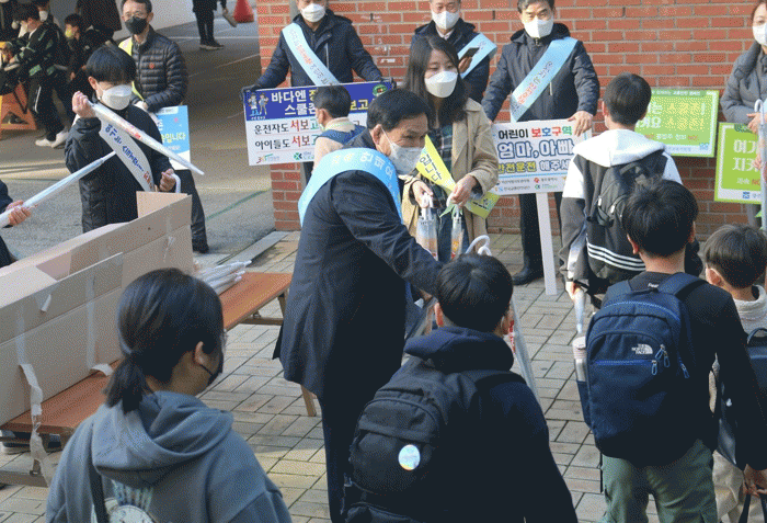 ¼ºÎ±³À°Áö¿øÃ» ±èÁ¦¾È ±³À°ÀåÀº ¡°¸ÅÀÏ ¾ÆÄ§ ¾î¸°ÀÌÀÇ ¾ÈÀüÇÑ µî±·±æÀ» À§Çؼö°íÇÏ´Â Çб³ °ü°èÀÚ ¹× ±¤ÁÖ³ì»ö¾î¸Ó´Ï¿¬ÇÕȸ¿ø ºÐµé°Ô °¨»çµå¸°´Ù¡±¸ç ¡°¿ì¸® ¾ÆÀ̵鵵 µî±·±æ ±³Åë»ç°í ¿¹¹æ¼öÄ¢À» Àß ÁöÄÑ ¾ÈÀüÇÏ°í °Ç°ÇÑ Çб³»ýȰÀ» ÇßÀ¸¸é ÁÁ°Ú´Ù¡±°í ¸»Çß´Ù.