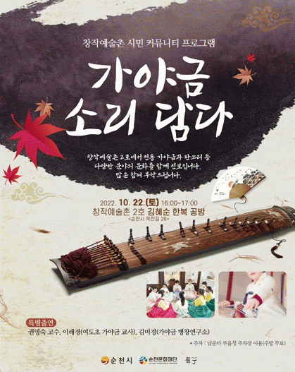 ±¹¾Ç °ø¿¬ °ü¶÷Àº ¹«·áÀ̸ç, ÀÚ¼¼ÇÑ ³»¿ëÀº ¼øÃµ¹®ÈÀç´Ü ´©¸®Áý ¶Ç´Â ¼øÃµ âÀÛ¿¹¼úÃÌ 2È£¿¡¼ È®ÀÎÇÒ ¼ö ÀÖ´Ù.
