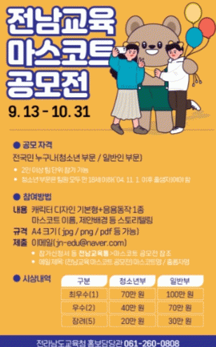 Àü³²±³À°À» Ç¥ÇöÇÒ ¼ö ÀÖ´Â µ¶Ã¢ÀûÀ̸ç Ä£±ÙÇÑ Ä³¸¯ÅÍÀÇ µðÀÚÀΰú ÇØ´ç ij¸¯ÅÍ¿¡ ´ëÇÑ ½ºÅ丮ÅÚ¸µÀ» ÁÖÁ¦·Î, ±¹¹Î ´©±¸³ª Âü¿©ÇÒ ¼ö ÀÖ´Ù. û¼Ò³â°ú ÀϹÝÀÎ 2°³ ºÎ¹®À¸·Î ¿î¿µµÇ¸ç, ÆÀ ¶Ç´Â °³ÀÎÀ¸·Î ÀÀ¸ð °¡´ÉÇÏ´Ù. û¼Ò³â ºÎ¹®Àº ÆÀ ±¸¼º¿ø ¸ðµÎ°¡ ¸¸ 18¼¼ ÀÌÇÏ(2004³â 11¿ù 1ÀÏ ÀÌÈÄ Ãâ»ýÀÚ)¿©¾ß ÇÑ´Ù.