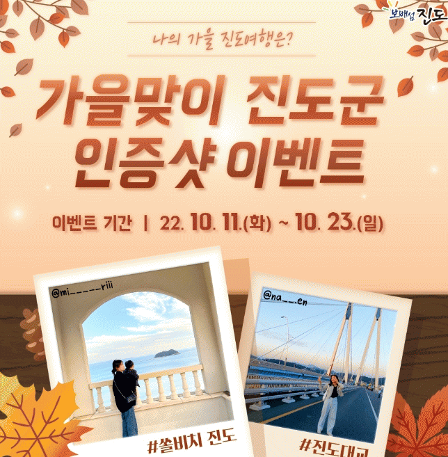 ¹æ¹®°´µéÀº ÇØ´ç °ü±¤Áö ¹æ¹® ÈÄ ÀνºÅ¸±×·¥, ÆäÀ̽ººÏ, À¯Æ®ºä µî Áøµµ±º °ø½Ä SNS ÆÈ·Î¿ì¿Í ÇÔ²² ÀÎÁõ¼¦ SNS °ÔÀç ¹Ì¼ÇÀ» ¼öÇàÇÏ°Ô µÈ´Ù.