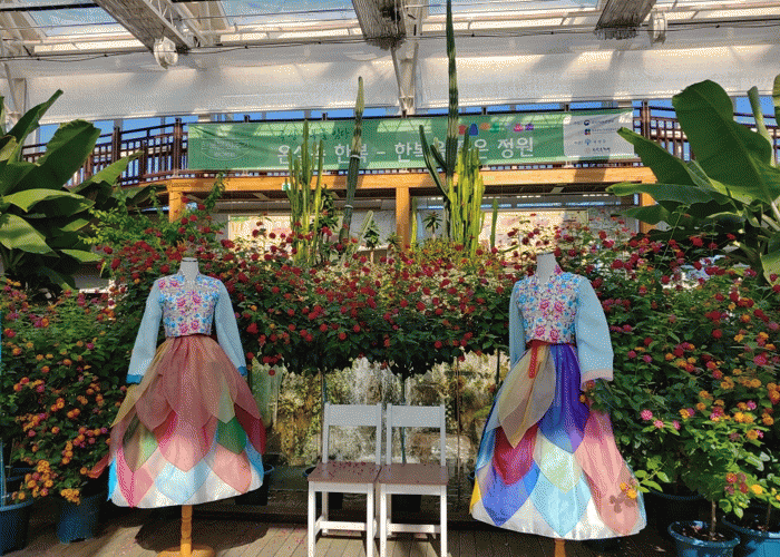 ¶ÇÇÑ Àå¹Ì¸¦ ¸ðƼÇÁ(motif)·Î »ö°ú ÆÐÅÏ, ¿Ê¼± µîÀ» È·ÁÇϸ鼵µ Çö´ëÀûÀ¸·Î µðÀÚÀÎÇß´Ù. ±×¸®°í ¡®ÇѺ¹À» ǰÀº Á¤¿ø¡¯À̶ó´Â ÄܼÁÆ®·Î ÀÛǰµéÀ» À¯¸® ¿Â½Ç¿¡ Àü½ÃÇØ ¿ÀºêÁ¦ÈÇß´Ù.