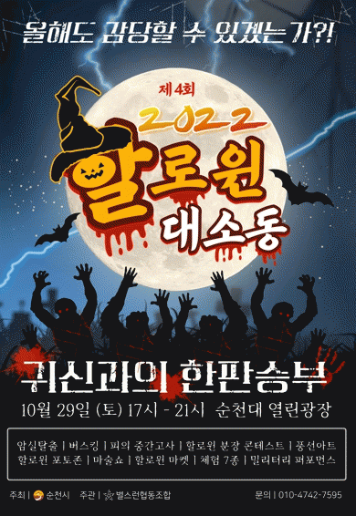 ¿ÃÇØ·Î 4ȸ°¸¦ ¸Â´Â ÇÒ·ÎÀ© Çà»ç´Â ´ëÇзΠȰµ¿°¡¿Í û³â °øµ¿Ã¼µéÀÇ ±â¹ßÇÑ ¾ÆÀ̵ð¾î¿¡ »ó°¡¹ø¿µÈ¸, »ï»êµ¿ ºÎ³àȸ, ¼øÃµ´ëÇб³ µ¿¾Æ¸®¿¬ÇÕȸ µî ¿©·¯ ´Üü¿ÍÀÇ Çù¾÷ÀÌ ´õÇØÁ® ´õ¿í ¿À½ÏÇÏ°í ´Ùä·Î¿î ³»¿ëÀ¸·Î ½Ã¹ÎµéÀÇ ¹ß±æÀ» À̲ø ¿¹Á¤ÀÌ´Ù.