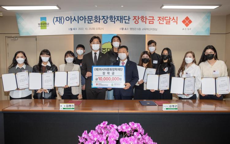 ±èµ¿Áø ÃÑÀåÀº ¡°¾Æ½Ã¾Æ¹®ÈÀåÇÐÀç´Ü¿¡¼ À¯ÇлýµéÀ» À§ÇØ ÀåÇбÝÀ» ÀüÇØÁ༠°¨»çÇÏ´Ù¡±¸ç ¡°±¤ÁÖ´ë ¿ª½Ã À¯ÇлýµéÀÌ Çо÷°ú Çѱ¹¹®È ÀûÀÀ¿¡ ¾î·Á¿òÀÌ ¾øµµ·Ï Àû±ØÀûÀ¸·Î Áö¿øÇϰڴ١±°í ¹àÇû´Ù.