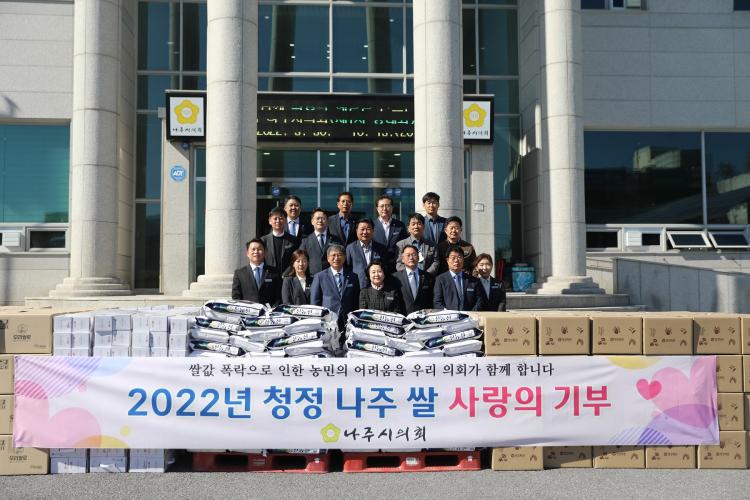 À̹ø ±âºÎ¹°Ç° Àü´Þ ¶ÇÇÑ ½Ò°ª¹®Á¦ ÇØ°á¿¡ ´ëÇÑ ³ªÁÖ½ÃÀÇȸÀÇ Áö¼ÓÀûÀÎ °ü½É°ú ³ë·ÂÀÇ ÀÏȯÀ¸·Î ÁøÇàµÈ °ÍÀ¸·Î ÀÇȸ´Â ³ªÁÖ¿¡¼ »ý»êµÈ ½Ò°ú ´©·îÁö, »½Æ¢±â µî ½Ò °¡°ø½ÄǰÀ» ±¸¸ÅÇØ Àü´ÞÇÔÀ¸·Î½á ³ª´®½ÇõÀ» ÅëÇÑ ½ÃÀÇȸÀÇ »çȸÀû Ã¥ÀÓÀ» ÀÌÇàÇϰí, Áö¿ª ³ó»ê¹°ÀÇ ¼Òºñ ÃËÁø ¹× ÆÇ·Î È®º¸¿¡ ±â¿©ÇÏ´Â µî ÀÇÀǰ¡ ÀÖ´Ù°í ¼³¸íÇß´Ù.