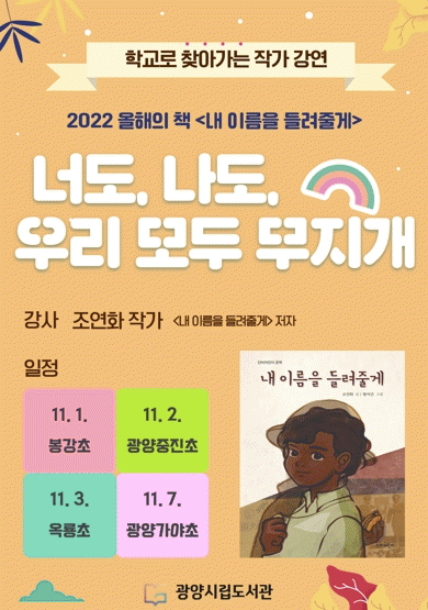 À̹ø ã¾Æ°¡´Â ÀÛ°¡ ÃÊû °¿¬Àº »ó¹Ý±â¿¡ ¹Ì¸® ½Åû¹Þ¾Ò´ø Áö¿ª ³» ÃʵîÇб³ 4°³±³¸¦ ´ë»óÀ¸·Î Çϸç, 11¿ù 1ÀÏ ºÀ°Ãʸ¦ ½ÃÀÛÀ¸·Î ±¤¾çÁßÁøÃÊ, ¿Á·æÃÊ, ±¤¾ç°¡¾ßÃʸ¦ Â÷·Ê·Î ã´Â´Ù.