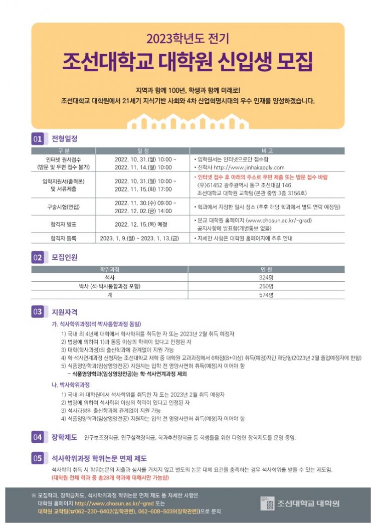 Á¶¼±´ëÇб³¿¡ µû¸£¸é À̹ø¿¡ ¸ðÁýÇÏ´Â ´ëÇпø ½ÅÀÔ»ýÀº ÃÑ 574¸íÀ¸·Î ¼®»ç°úÁ¤ 324¸í°ú ¹Ú»ç°úÁ¤ 250¸íÀ» ¸ðÁýÇÑ´Ù.
