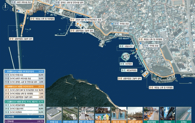 ÁÖ¿ä»ç¾÷À¸·Î´Â ³ìµ¿Ç׿¡ ¾î¹Îº¹Áö¸¦ À§ÇÑ ¾î±¸º¸°üâ°í, ±Ù·ÎÀÚ ½°ÅÍ, ÇØ¾ç¾²·¹±â 󸮽ü³, ¾î¹Î°øµ¿ÀÛ¾÷Àå ±×´Ã¸· ¼³Ä¡ µî°ú ³ìµ¿Ç× °ü±¤ Ȱ¼ºÈ¸¦ À§ÇÑ ÈÀå½Ç ÀçÁ¤ºñ, ·¹Àκ¸¿ì ±¤Àå Á¶¼º, ¿À¼Ç¿öÅ©, µå¸²½ºÄ«ÀÌ µîÀÌ ÀÖ´Ù.