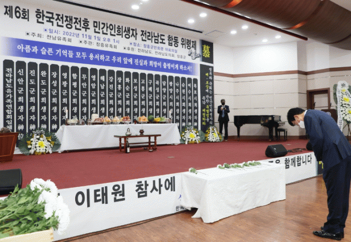 ±è¿µ·Ï Àü¶ó³²µµÁö»ç´Â Ã߸ð»ç¿¡¼ ¡°Çѱ¹ÀüÀï ´ç½Ã ¹«°íÇÏ°Ô Èñ»ýµÇ½Å ¿µ·Éµé²² ±íÀº ¾ÖµµÀÇ ¶æÀ» Ç¥ÇÏ¸é¼ ÀüÀïÀÌ ³²±ä »óÈçÀ» Ä¡À¯Çϰí öÀúÇÑ Áø»ó±Ô¸í°ú ¿ÏÀüÇÑ ¸í¿¹È¸º¹À» ÀÌ·ê ¼ö ÀÖµµ·Ï Àü¶ó³²µµ°¡ ¾ÕÀå¼°Ú´Ù¡±°í ¸»Çß´Ù.