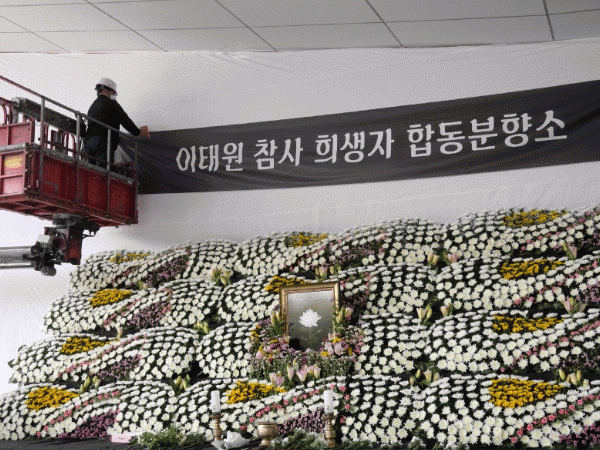 ¾Õ¼ ±¤Áֽô ¡®»ç°í »ç¸ÁÀÚ¡¯·Î Ç¥±âÇ϶ó´Â Á¤ºÎÀÇ ±Ç°í¿¡ ÇÕµ¿ºÐÇâ¼Ò Á¦´Ü Áß¾Ó¿¡ ¡®ÀÌÅ¿ø »ç°í »ç¸ÁÀÚ¡¯ Ç©¸»À» ¼³Ä¡ÇßÁö¸¸ ÀÌÈÄ¿¡ À̸¦ ¾ø¾Ö°í °ËÀº ¹ÙÅÁ¿¡ Èò ±¹È »çÁøÀ¸·Î Èñ»ýÀÚµéÀÇ ¿µÁ¤À» ´ë½ÅÇß´Ù.
