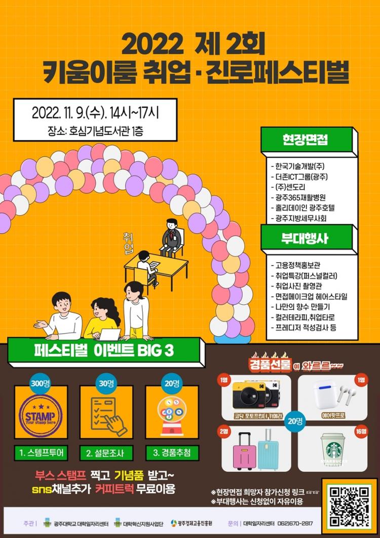 ¶ÇÇÑ ±¤ÁÖ´ë ´ëÇÐÀÏÀÚ¸®¼¾ÅÍ 1:1 Ãë¾÷ÄÁ¼³ÆÃ°ú ¼º°øÀûÀÎ ¸éÁ¢À» À§ÇÑ ÆÛ½º³ÎÄ÷¯ Ư° µîÀÇ ºÎ´ëÇà»ç¿Í ¸éÁ¢¸ÞÀÌÅ©¾÷&Çì¾î½ºÅ¸Àϸµ, Ãë¾÷ Áõ¸í»çÁø ÃÔ¿µ°ü, Ä÷¯Å×¶óÇÇ ¹× Àû¼º°Ë»ç¸¦ üÇèÇÒ ¼ö ÀÖ´Â À̺¥Æ®°üµµ Áö¿øµÈ´Ù.