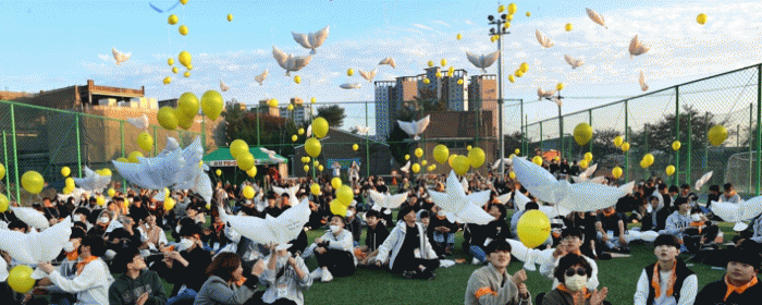¸ÕÀú ÇлýµéÀº °Áø Dz»ì±¸Àå¿¡¼ 2¹ÚÀ» ÇÔ²² º¸³¾ ³ó°¡¸¦ ¸¸³ª ÇÔ²² ÀÌÅ¿ø Âü»ç·Î ÀÎÇÑ Èñ»ýÀڵ鿡°Ô ¾Öµµ¸¦ Ç¥ÇÏ°í ºñµÑ±â ¸ð¾ç dz¼±¿¡ ¿°¿øÀ» ´ã¾Æ Çϴ÷Π¶ç¿ü´Ù. ÀÌ¾î ³ó°¡¿Í ÇлýÀÌ Çϳª·Î ¿¬°áµÈ´Ù´Â ÁÖÁ¦ÀÇ ¸¶¼ú°ø¿¬À» °ü¶÷ÇÑ ÈÄ ³ó°¡·Î À̵¿Çß´Ù.