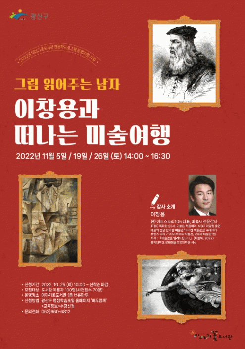 ¡®±×¸² ÀоîÁÖ´Â ³²ÀÚ¡¯ ÀÌâ¿ë ¡®¾ÆÆ®½ºÅ丮105¡¯ ´ëÇ¥¿Í ÇÔ²²ÇÏ´Â À̹ø ÇÁ·Î±×·¥Àº 5ÀÏÀ» ½ÃÀÛÀ¸·Î 19ÀÏ, 26ÀÏ ¼¼ Â÷·Ê ¿¸°´Ù.