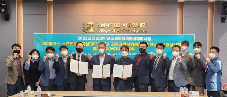 Àü³²´ë SWÁ߽ɴëÇлç¾÷´Ü(´ÜÀå ±è°æ¹é ±³¼ö. ¼ÒÇÁÆ®¿þ¾î°øÇаú)Àº Áö³ 10¿ù 28ÀÏ AIÀ¶ÇÕ´ëÇРȸÀǽǿ¡¼ SK½¯´õ½º(ÁÖ), Àü³²´ë Áö¿ªÀü·«»ê¾÷À¶ÇÕº¸¾ÈÇÙ½ÉÀÎÀç¾ç¼º»ç¾÷´Ü°ú ¡®ÀÎÅÏ½Ê ¹× »êÇÐÇù·Â¡¯¿¡ ³ª¼±â·Î Çù¾àÇß´Ù.