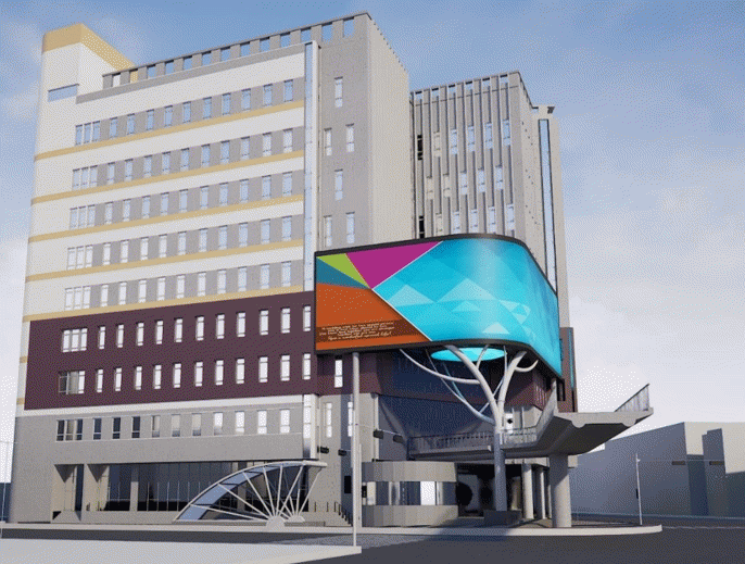 ¹é¿î½ºÄù¾î ¹Ìµð¾î ¿ùÀº ³Êºñ 42.4m¿¡ ³ôÀÌ 9.915mÀÇ ÃÊ´ëÇü LED µð½ºÇ÷¹ÀÌ·Î, ³²±¸Ã»»ç Á¤¹® ¹æÇâ 4Ãþ°ú 5Ãþ Àü¸éºÎ¿¡ ¡®¤¤¡¯ÀÚ °î¼± ÇüÅ·Π¼³Ä¡µÈ´Ù.