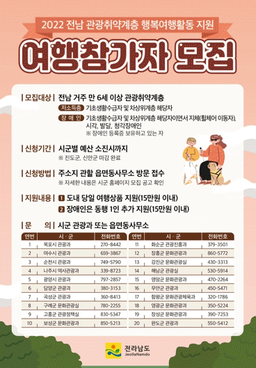 Âü¿©¸¦ ¹Ù¶ó´Â Àü³²µµ¹ÎÀº ½Ã±º ´©¸®Áý °í½Ã.°ø°íÀÇ °ü·Ã ³»¿ëÀ» Âü°íÇϰųª ½Ã±º °ü±¤ºÎ¼¿¡ ¹®ÀÇÇÏ¸é µÈ´Ù. ´Ù¸¸ ¸ðÁý°ú ¿î¿µ ½Ã±â´Â ½Ã±ºº°·Î ´Ù¸¦ ¼ö ÀÖ´Ù.